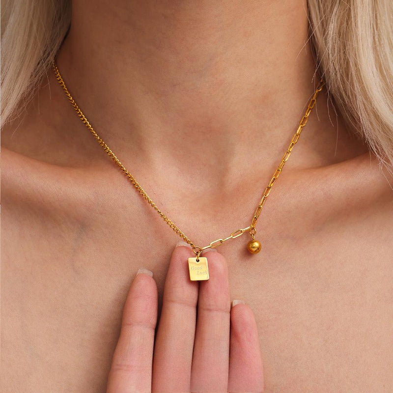 B廠-方牌字母Good Luck拼接鏈條輕奢風項鍊不鏽鋼保色鎖骨頸鏈「P1999」25.04-1