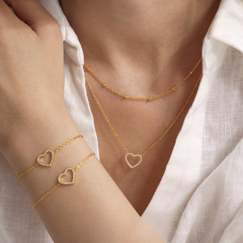 B廠-不鏽鋼滿鑽愛心鋯石雙層精緻鎖骨項鍊不掉色質感手鍊套裝女「TXP234-TXE234」25.03-4