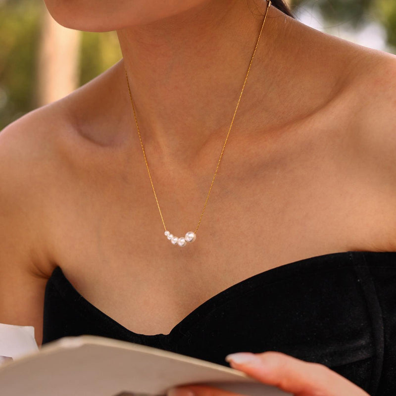 B廠-高光貝珠設計感小眾鎖骨鏈大小珍珠項鍊新款不鏽鋼頸鏈配飾「P287」25.04-2
