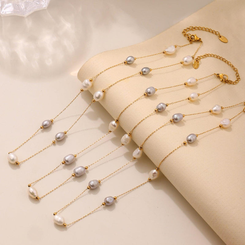 B廠-珍珠鏈條多層項鍊鎖骨鏈時尚輕奢首飾不鏽鋼鍍18K真金保色「P272」25.04-1