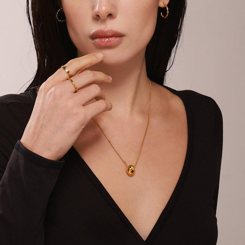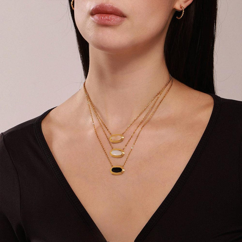 B廠-歐美跨境ins風幾何不鏽鋼黑瑪瑙鑲嵌項鍊吊墜18K鍍真金飾品「P077」25.03-2