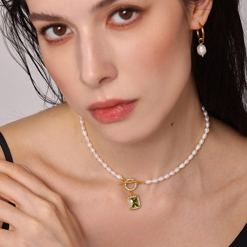 B廠-宮廷風淡水珍珠鋯石鎖骨項鍊OT扣設計輕奢氣質公主甜妹配飾「P1244」25.03-4