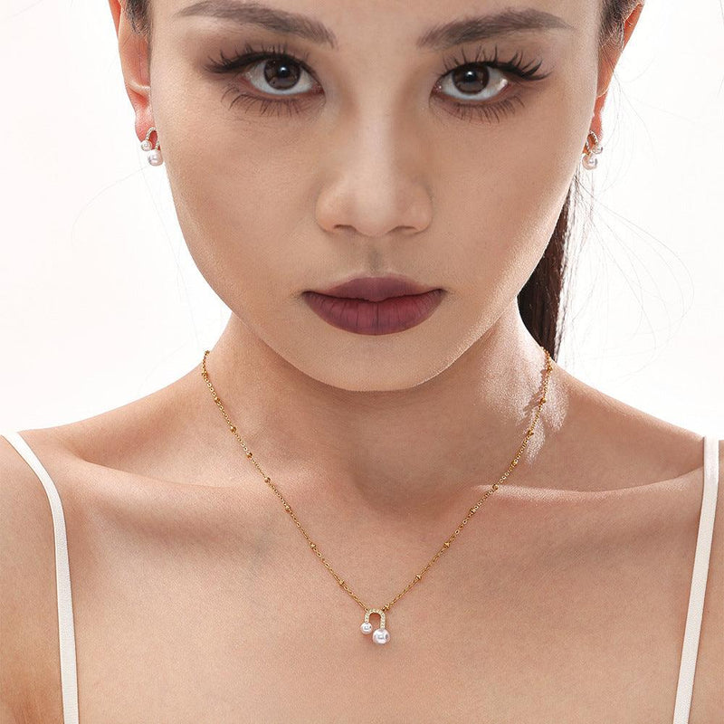 B廠-U型貝珠鋯石項鍊耳釘小眾設計感輕奢時尚鎖骨鏈耳飾套裝女「TXP231-TXF231」25.03-2