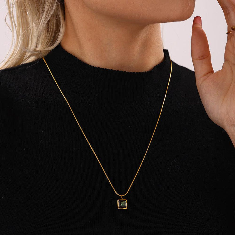 B廠-鈦鋼飾品黑貝殼孔雀石方牌鎖骨鏈輕奢時尚通勤項鍊配飾「P2143」24.12-3