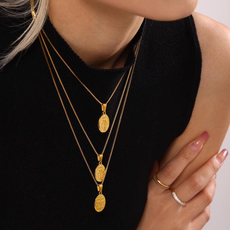 B廠-宗教人像不鏽鋼吊牌配飾盒子鏈惡魔之眼雙層疊戴網紅款首飾「P1970」24.12-3