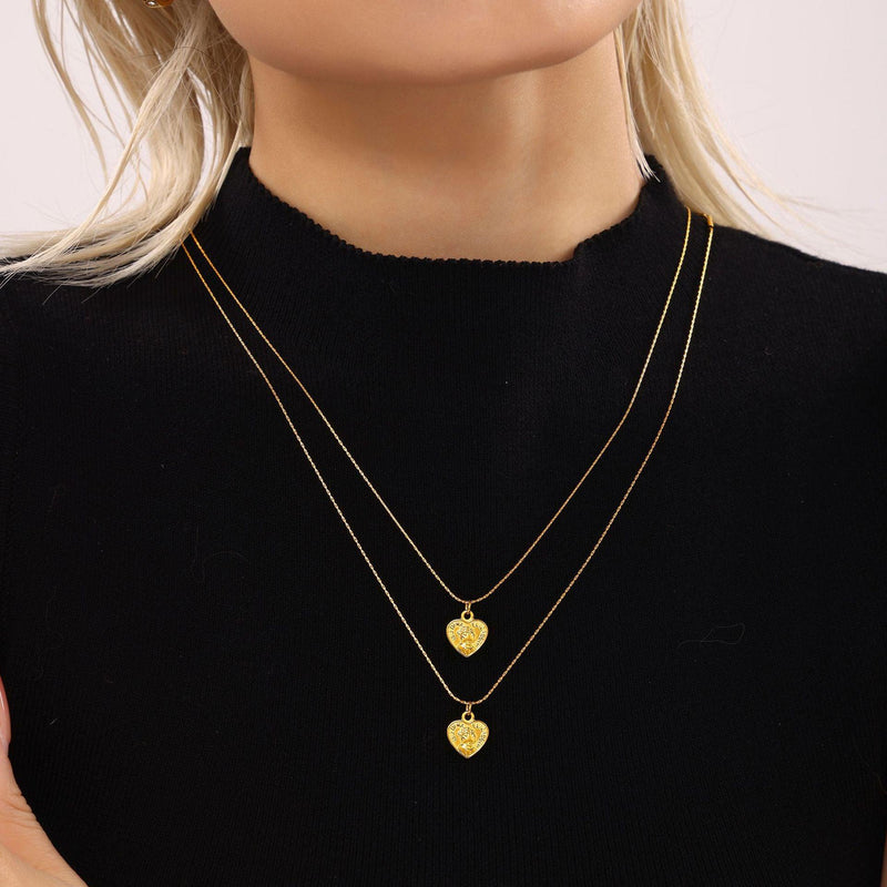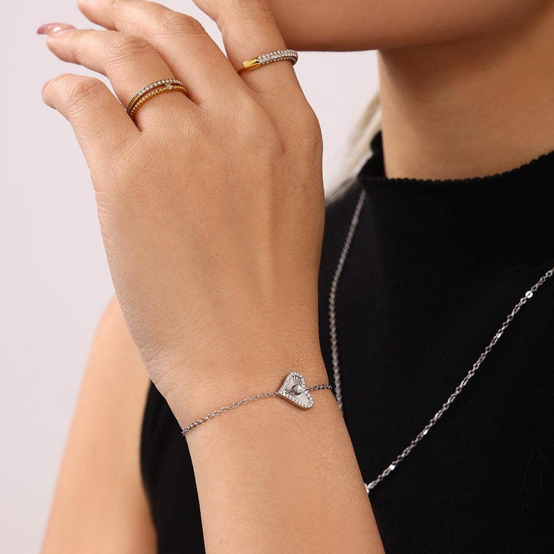 B廠-ins雙層愛心桃心滿鑽鋯石項鍊手鍊套裝不鏽鋼鍍18K真金首飾「TXP210-TXE210」24.12-3
