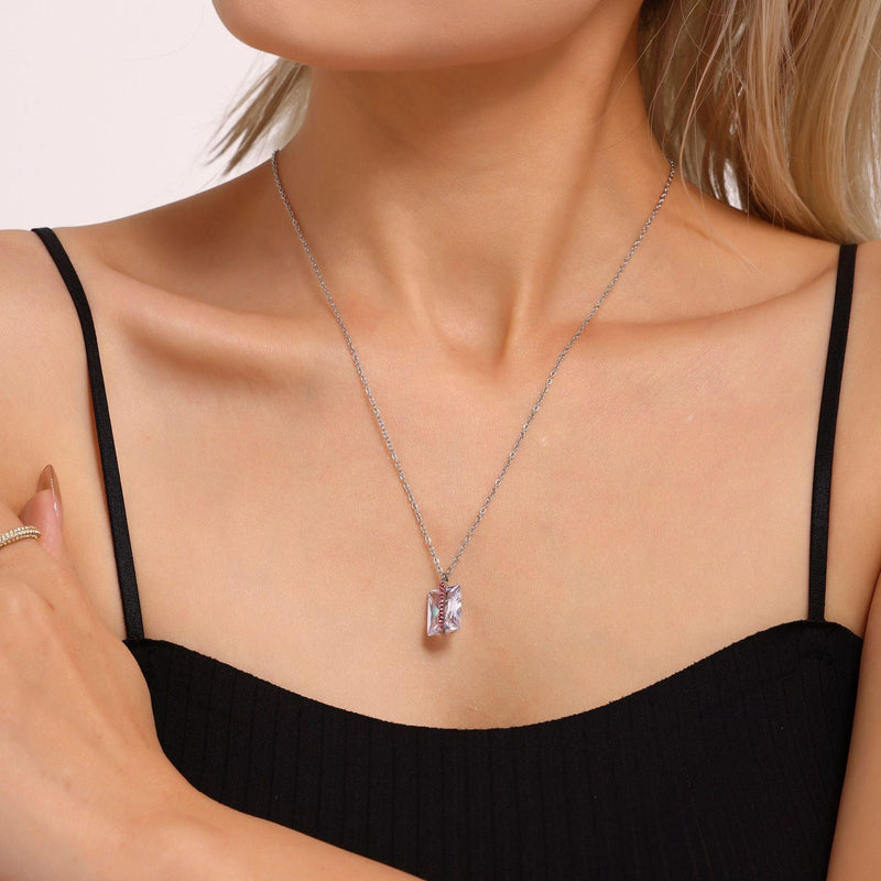 B廠-CNC滿鑽超大長方鋯石鎖骨項鍊不鏽鋼PVD電鍍18K真金首飾女「P2145」25.01-1