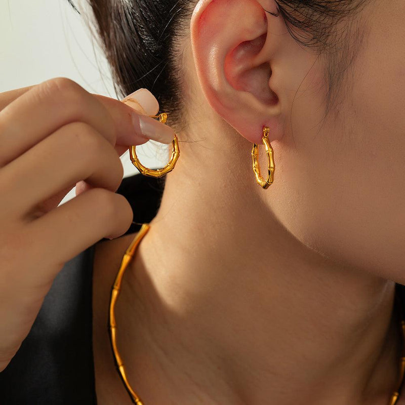 B廠-歐美ins個性簡約細竹節開口項鍊手鐲耳環鈦鋼鍍18K金百搭套裝組合「P067-F067-Z221」24.07-2