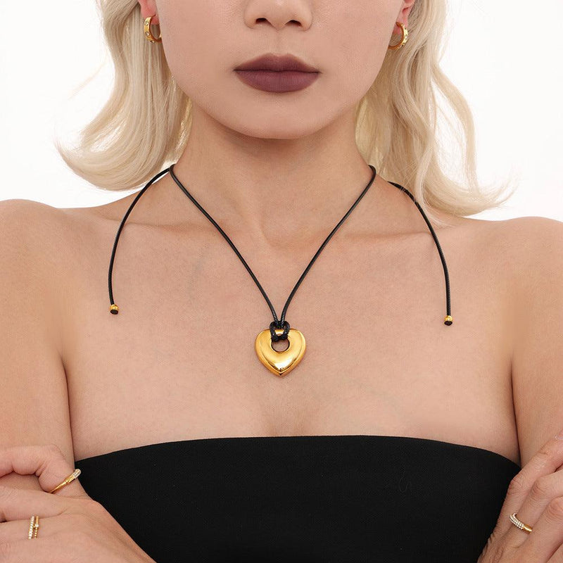 B廠-不鏽鋼愛心蠟繩長款毛衣鏈抽拉可調節實心吊墜PVD真金首飾「M054」24.11-5