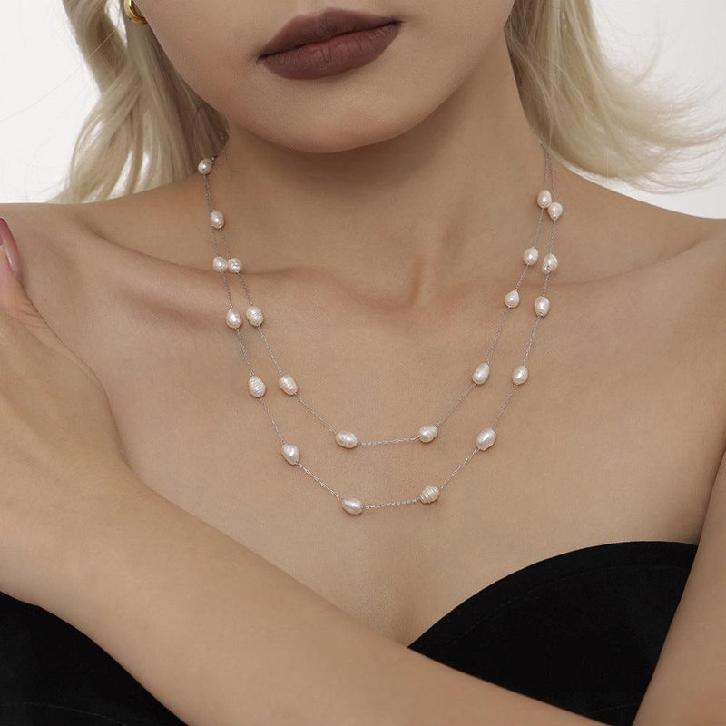B廠-不鏽鋼天然淡水珍珠毛衣鏈時尚輕奢感鎖骨項鍊廠家現貨批發「P2104」24.11-5