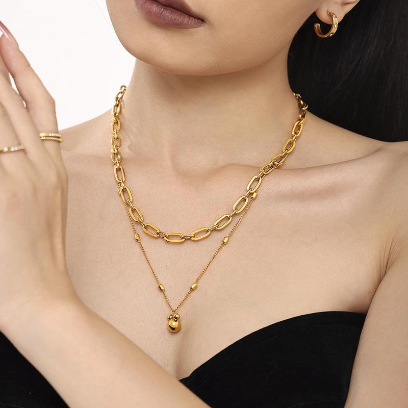 B廠-歐美跨境米奇吊墜雙層項鍊甜酷辣妹不鏽鋼鍍18K金首飾批發「P1628-P1629」24.11-4