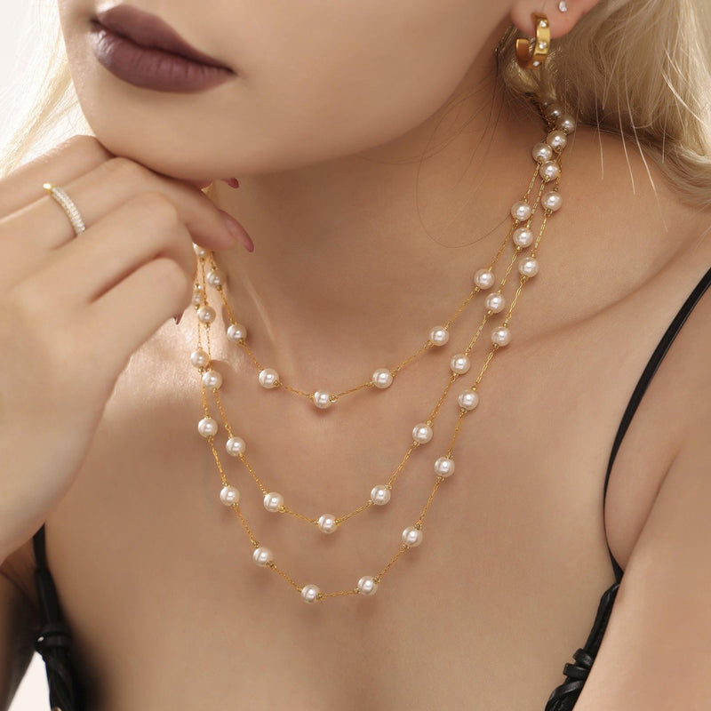 B廠-不鏽鋼施家貝珠6mm高版質感圓珠鎖骨項鍊手鍊套裝優雅配飾「TXE200-TXP200」24.12-1