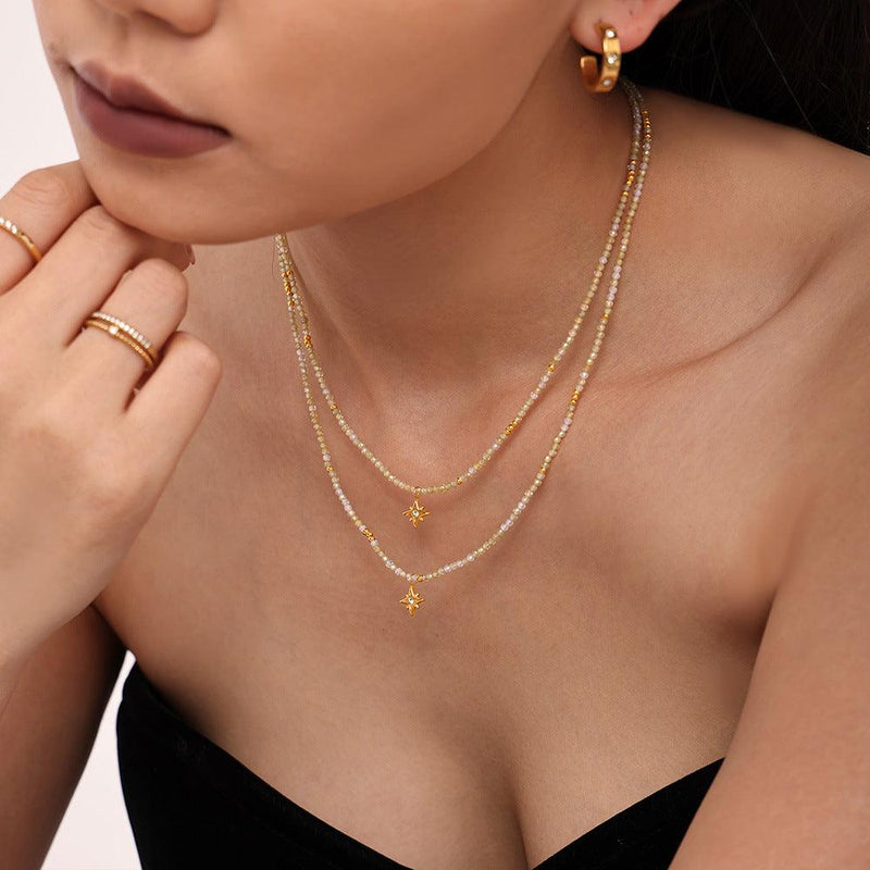 B廠-不鏽鋼八芒星閃耀鋯石吊墜天然石鎖骨項鍊優雅氣質首飾批發「P1659」24.11-4
