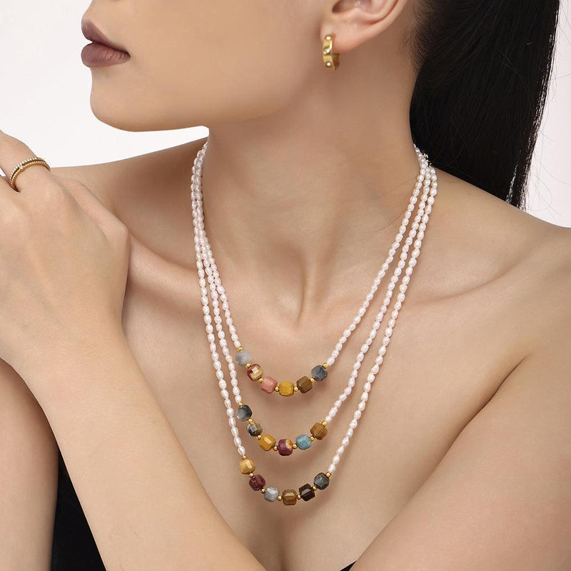B廠-多巴胺鋯石手工天然石串珠鎖骨項鍊小清新少女小眾配飾批發「P1626」24.11-4