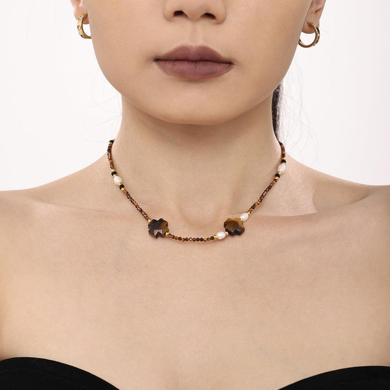 B廠-法式虎眼石淡水珍珠鎖骨項鍊奢華美拉德風秋冬頸鏈首飾批發「P2099」24.11-4
