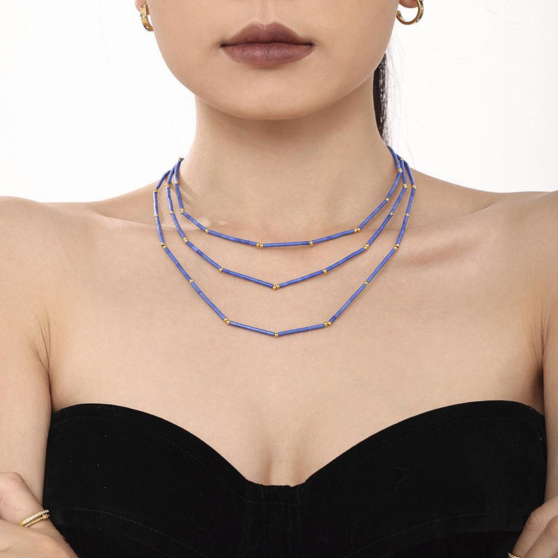 B廠-天然青金石串珠項鍊不鏽鋼鍍18k金小眾歐美跨境輕奢感首飾「P1601」24.11-4
