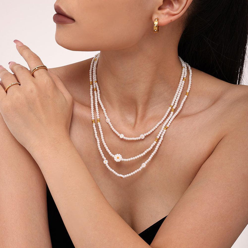 B廠-貝珠小雛菊手工串珠鎖骨項鍊女田園風花朵配件首飾現貨批發「P1636」24.11-4