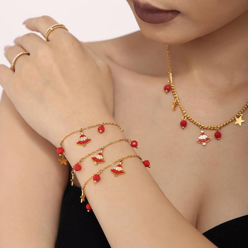 B廠-歐麥卡石榴石琺瑯彩釉聖誕元素幾何掛墜項鍊手鍊耳環不鏽鋼套裝女「TXP188-TXE188-TXF188」24.11-3