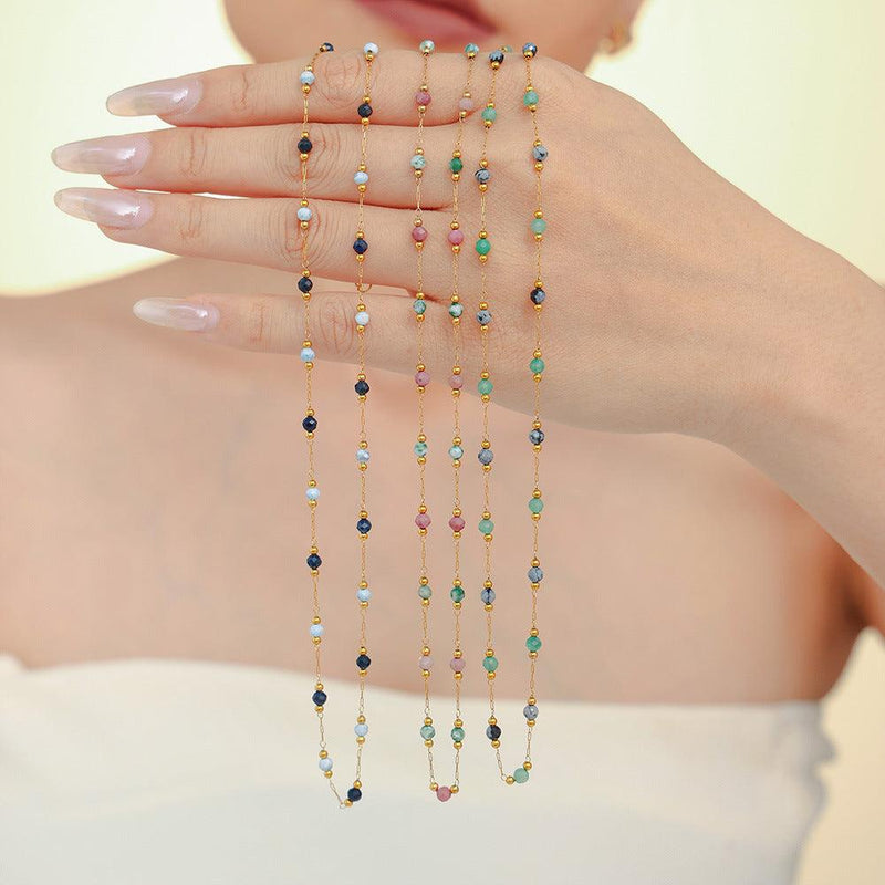 B廠-青金天然石手工串珠鎖骨項鍊雙層疊戴鈦鋼PVD鍍真金首飾品「P2076-P1694」24.10-2