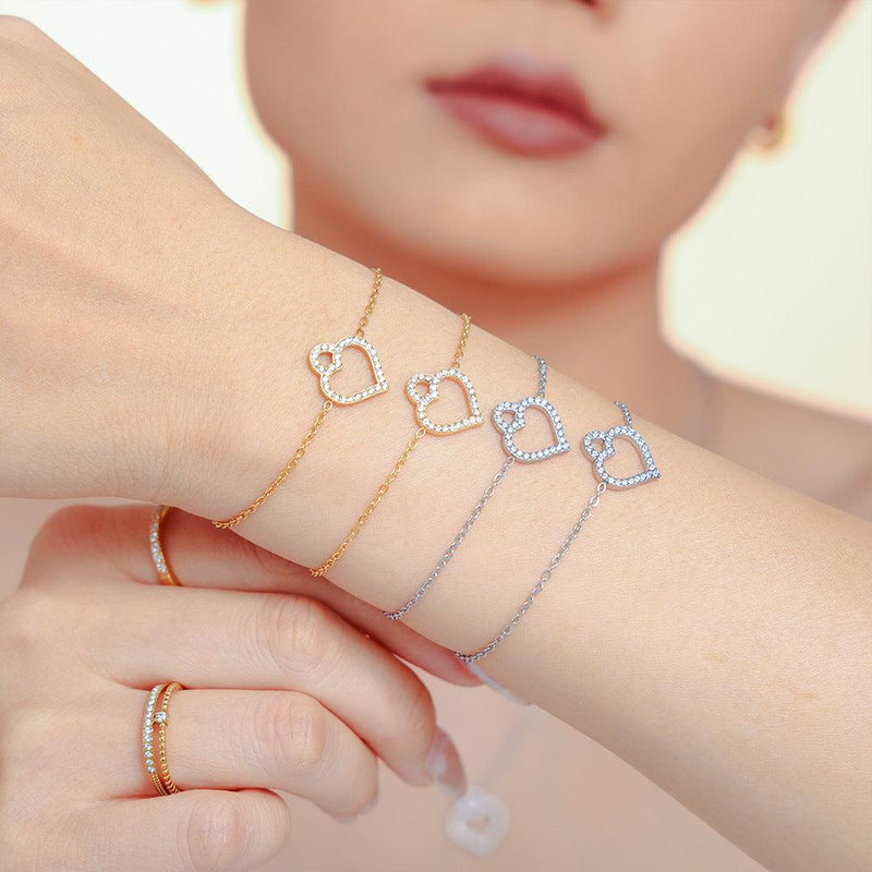 B廠-小眾氣質滿天星鋯石鏤空愛心鎖骨項鍊手鍊新款鈦鋼套裝女「P873-TXE148-TXP148」24.10-2