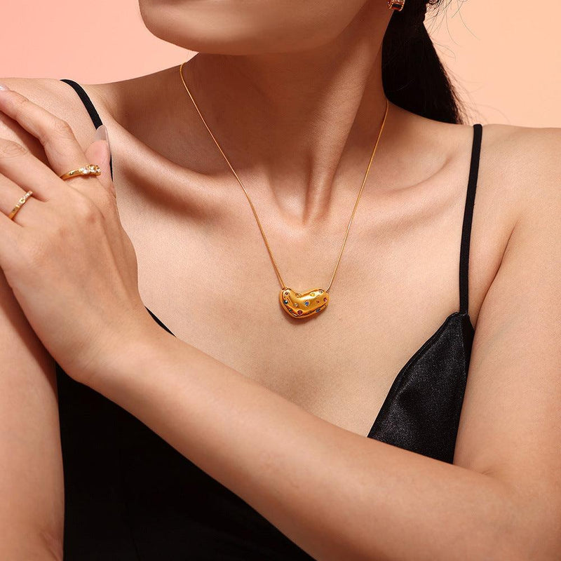 B廠-歐美INS風幾何彩鑽桃心鎖骨鏈 跨境項鍊女簡約氣質不鏽鋼首飾批發「P2028」24.09-3