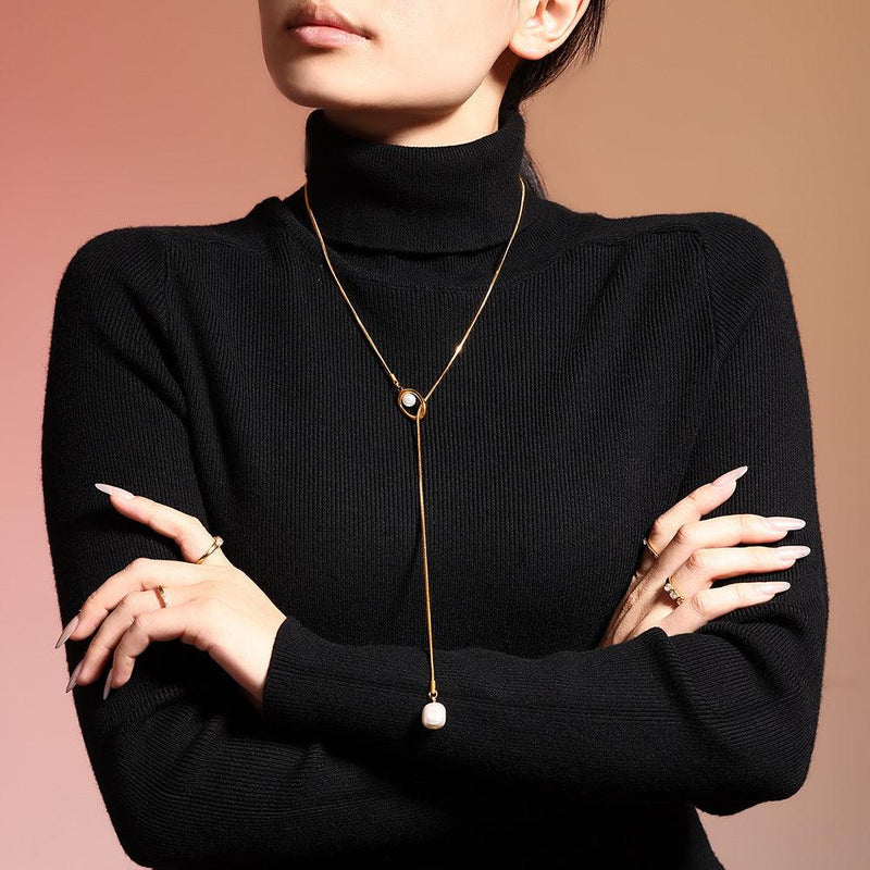 B廠-歐美跨境飾品 高光貝珠毛衣鏈不鏽鋼PVD電鍍長款疊戴秋冬毛衣配飾「M072」24.09-3