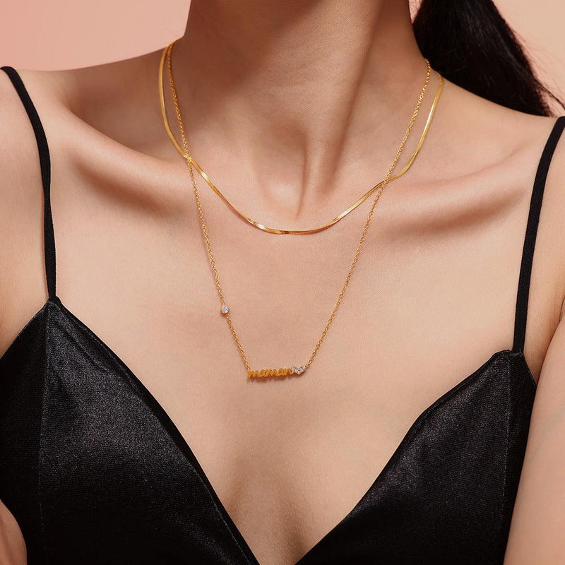 B廠-跨境熱銷ins風字母maman心形鋯石項鍊疊戴輕奢風不鏽鋼保色鎖骨鏈「P1702-P1694」24.09-3