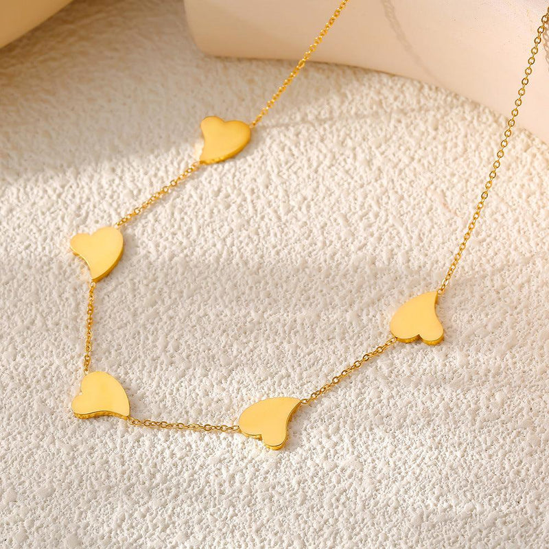 B廠-跨境新款歐美不規則愛心流蘇吊墜項鍊鈦鋼鍍18k金輕奢百搭鎖骨鏈「P363」24.08-1