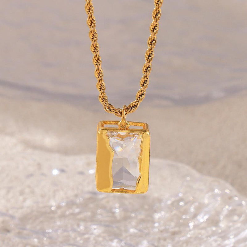 B廠-歐美跨境新款長方形鑲鋯石銅質吊墜鈦鋼鏈小眾疊戴風鍍18k金項飾「P1871-P1694」24.07-3