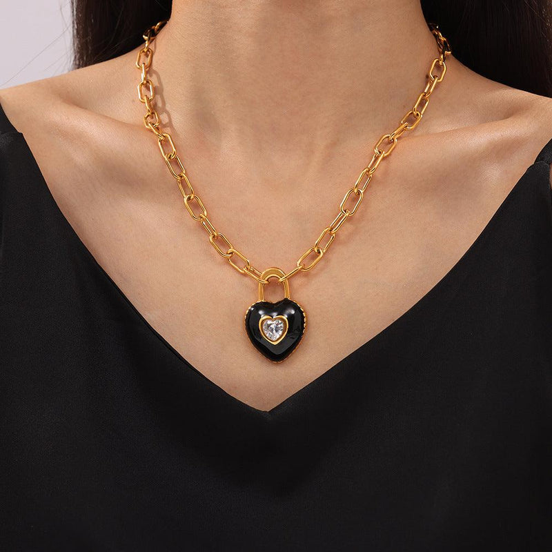 B廠-波西米亞輕奢感心形鋯石吊墜鎖骨項鍊復古氣質鈦鋼鍍18k金項飾女「P1854」24.07-1