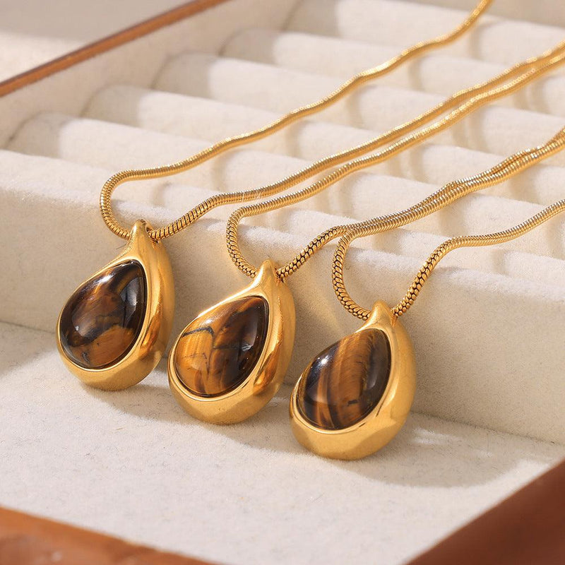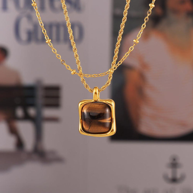 B廠-跨境新款疊戴風虎眼石吊墜項鍊女鈦鋼鍍18k金歐美輕奢百搭鎖骨鏈「P1852-P873」24.07-1