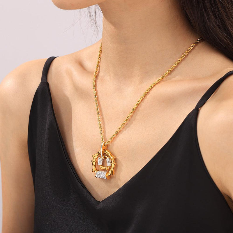 B廠-歐美chic風柱子拼接鑲鑽吊墜麻花編織鏈項飾手飾套裝組合鈦鋼鍍金「TXP072-TXE072」24.07-1
