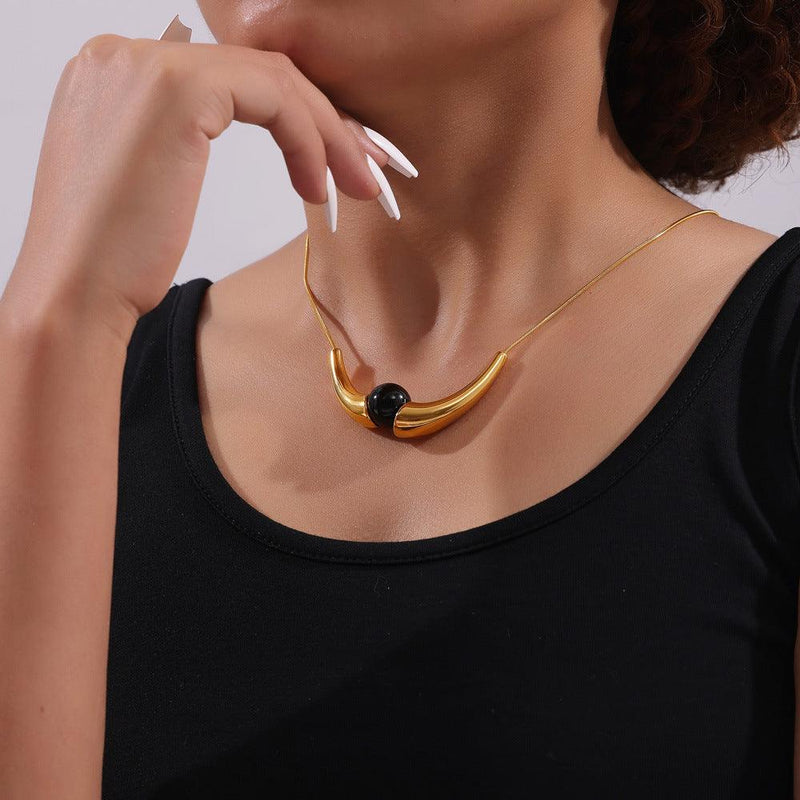 B廠-2024年新款輕奢鈦鋼鎖骨鏈女網紅風黑瑪瑙時尚個性長款不褪色項鍊「P1829」24.06-2