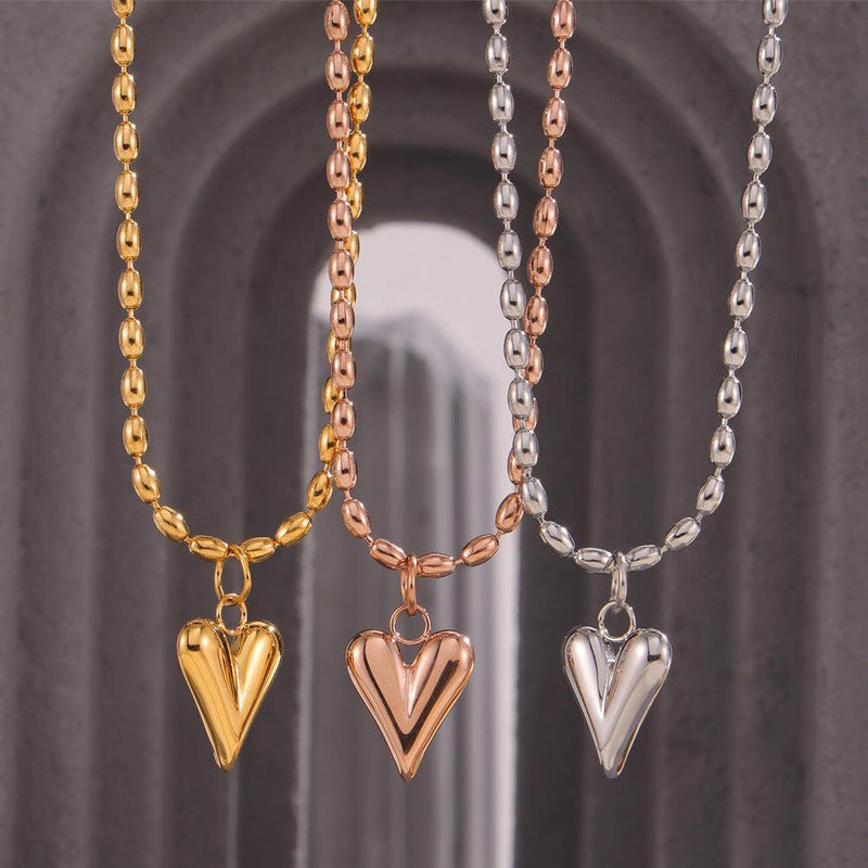 B廠-歐美ins輕奢小眾設計愛心米珠項鍊時尚氣質百搭鈦鋼鍍18k金鎖骨鏈「P1836」24.06-3