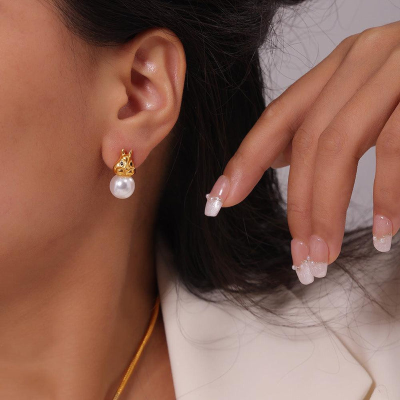 B廠-日韓簡約時尚鈦鋼鍍18k金飾品可愛貝珠小兔子吊墜小眾百搭套裝女「P050-F050」24.06-2
