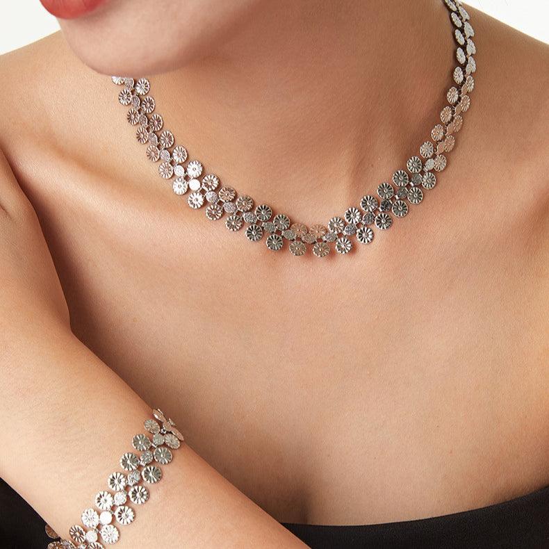 B廠-歐美風時尚多圓拼接批花鏈首飾套裝鈦鋼輕奢個性設計手鍊項鍊現貨「E493-F1085」24.06-4