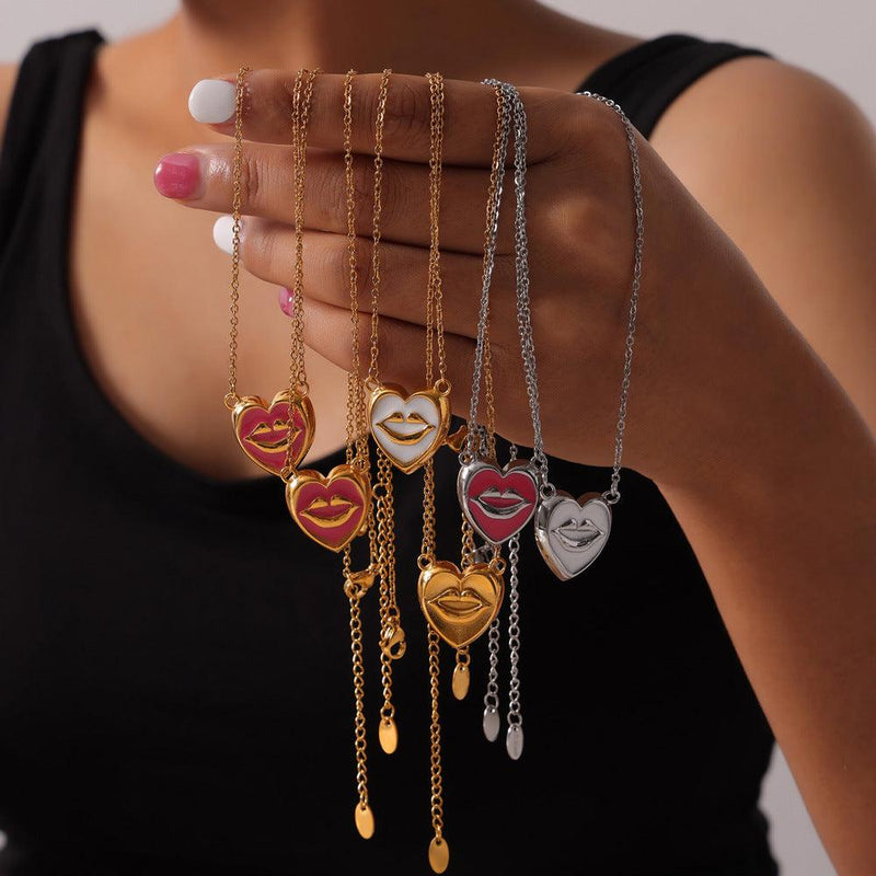 B廠-ins風誇張小眾鈦鋼鍍18K金貝珠耳環不掉色趣味嘴唇滴油愛心項鍊女「F065-P065」24.04-2