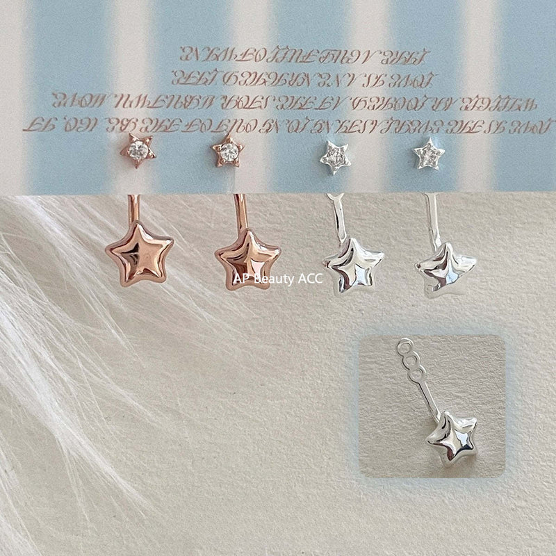 C廠-ins簡約風星星後掛式耳釘女清新設計高級感銀針鋯石耳環甜美耳飾「EH-4172」25.10-4