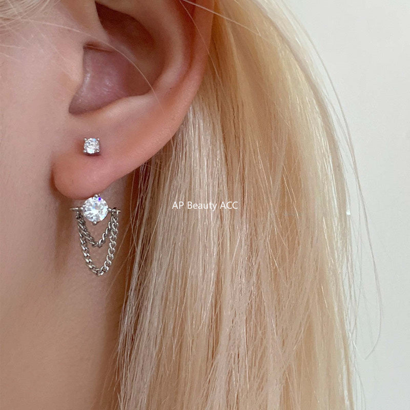 C廠-歐美Ins風氣質時尚流蘇鏈條耳釘女百搭個性冷淡風兩戴式鋯石耳飾「EH-4193」25.10-4