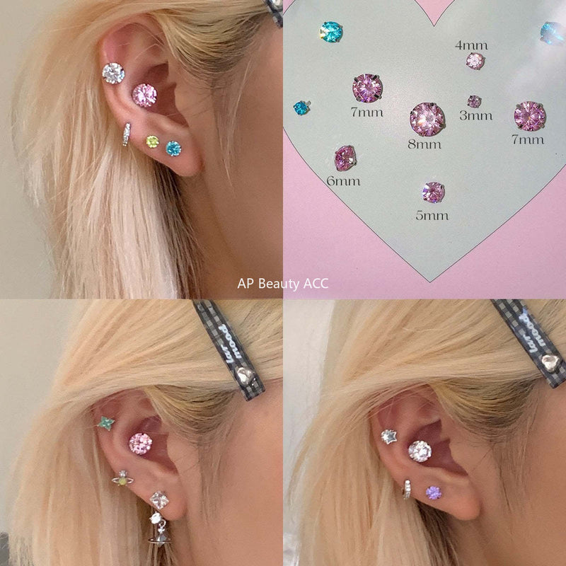 C廠-夏季多巴胺白色鋯石耳釘女精緻時尚甜酷風鈦鋼耳環簡約高級感耳飾「EH-4085」25.10-4