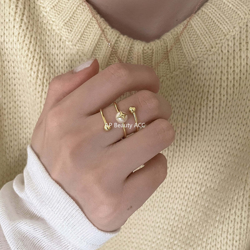 C廠-法式氣質名媛高級感珍珠戒指女百搭純銀疊戴風旋轉四芒星食指戒「JZ-0715」25.10-5