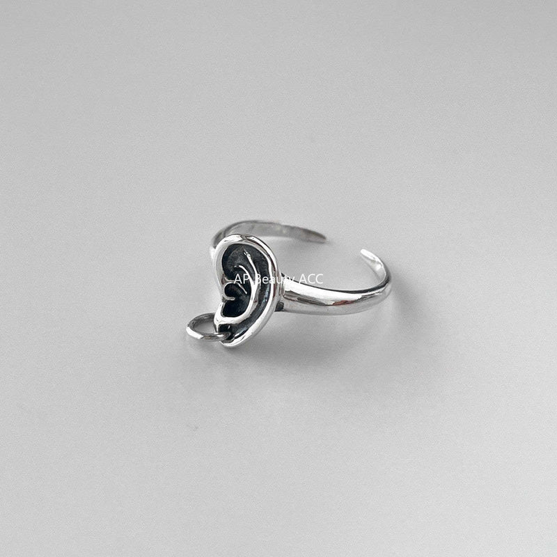 C廠-輕奢復古設計感小耳朵戒指女冷淡風氣質個性純銀食指環ins新指環「JZ-0657」25.10-5