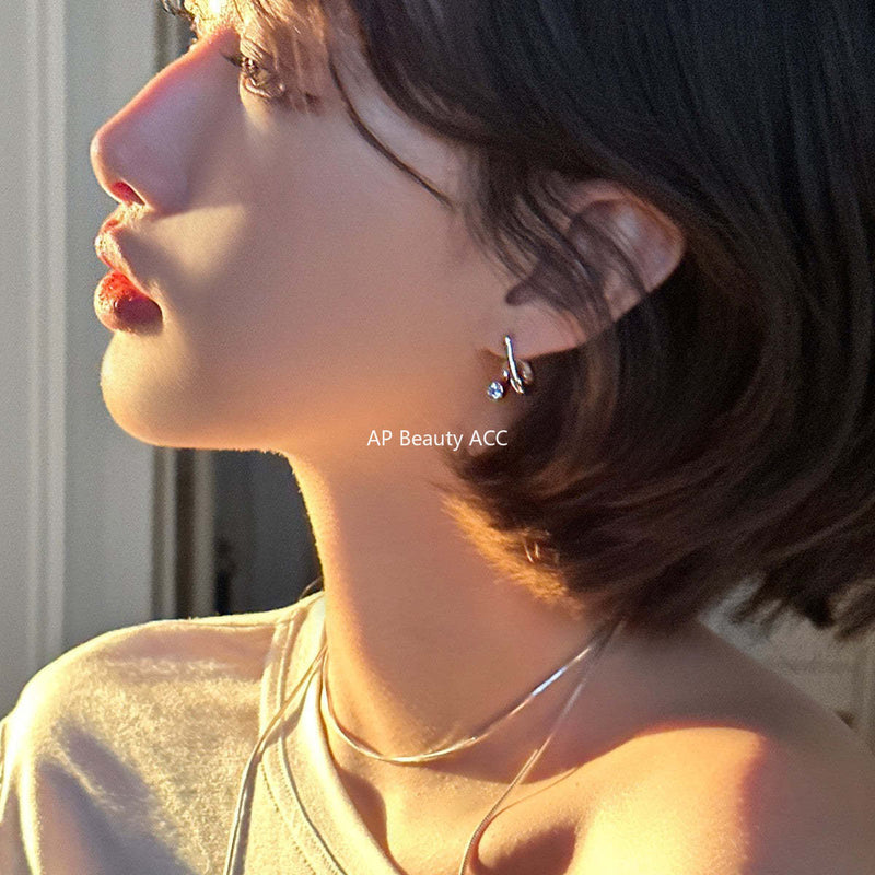 C廠-925銀針精緻曲線耳釘女輕奢小眾ins韓版鋯石耳環氣質通勤秋冬耳飾「EH-4049」25.10-5
