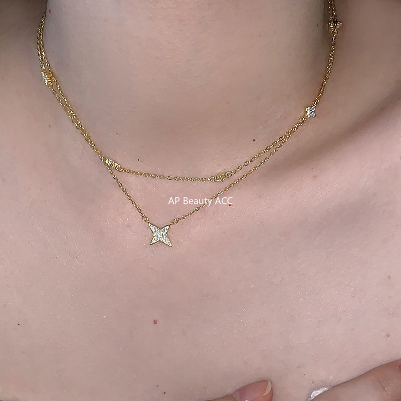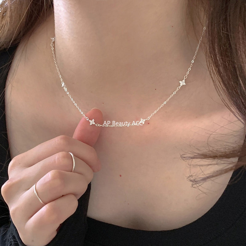 C廠-幸運四葉草滿天星純銀項鍊女小清新細款高級感個性百搭鎖骨頸鏈「XL-1228」25.11-1