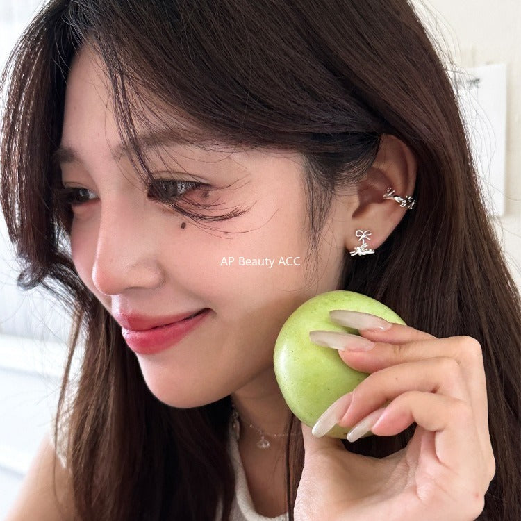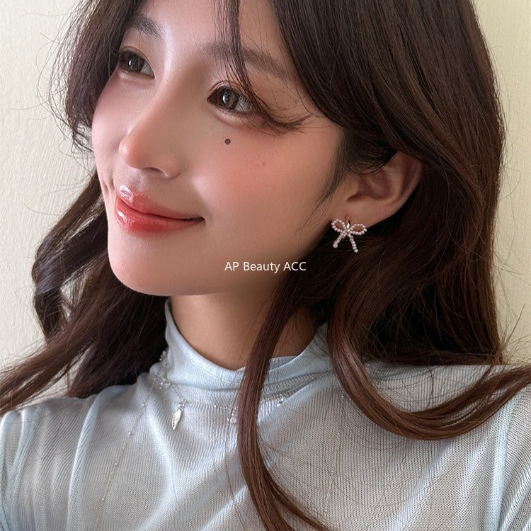 C廠-甜美小香風串珠蝴蝶結耳釘女絕美百搭高級感耳環韓系輕奢氣質耳飾「EH-4125」25.11-1