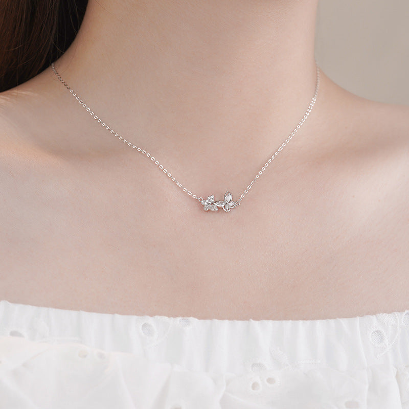 D廠-S999足銀高級輕奢雙蝴蝶項鍊女小眾設計百搭清新甜美鎖骨鏈「YC3079N_1」25.10-1
