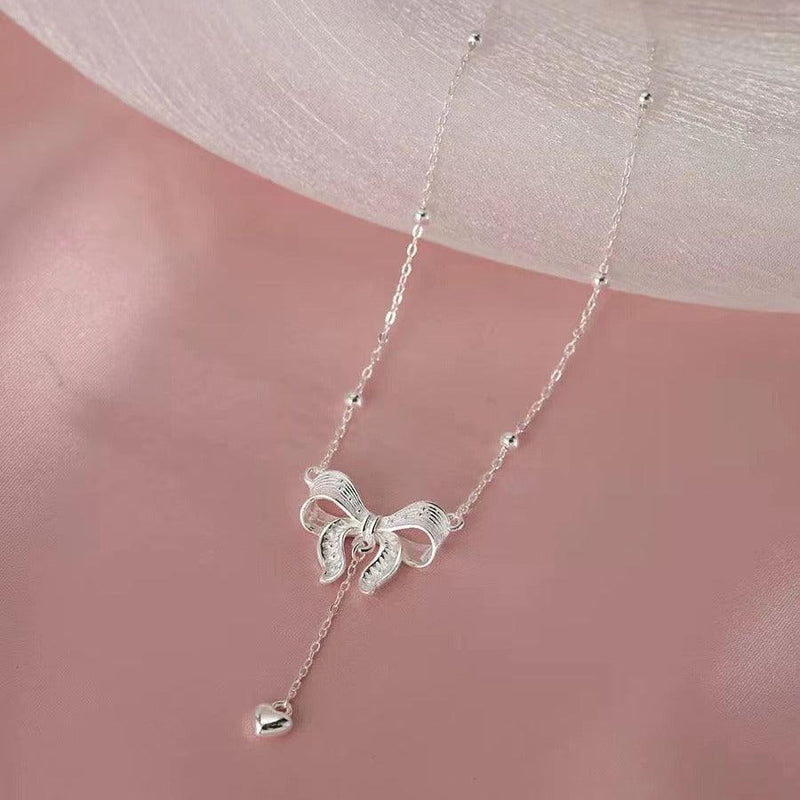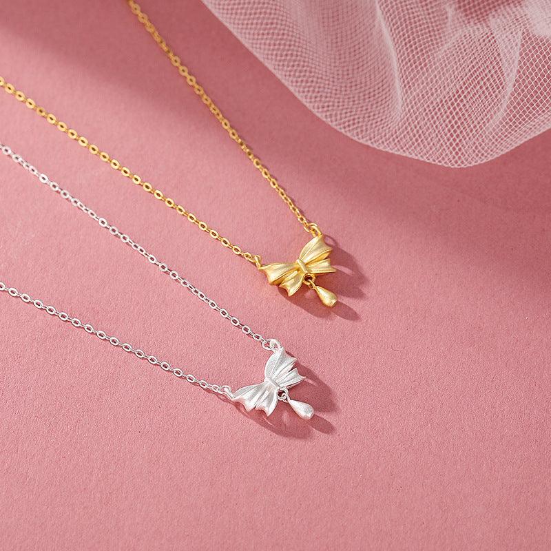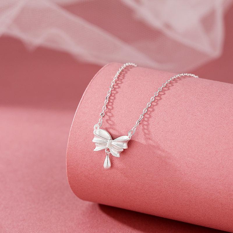 D廠-S999足銀蝴蝶結水滴項鍊輕奢感高級設計感清新甜美鎖骨鏈批發「YC3749N」24.07-2