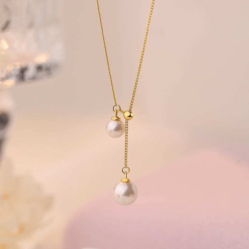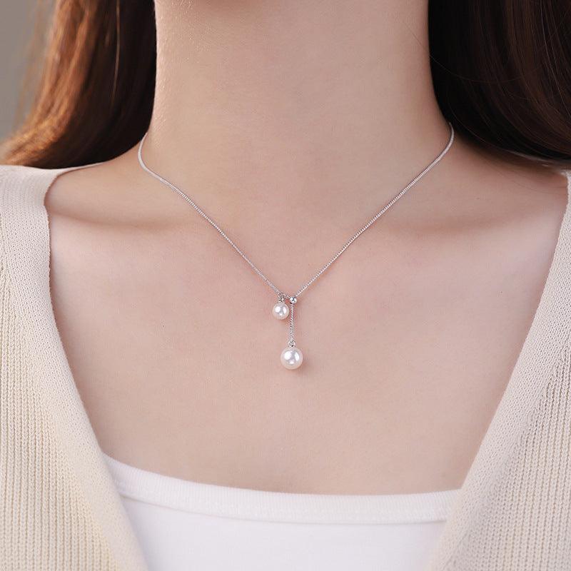 D廠-S925純銀氣質珍珠項鍊女簡約法式復古秋冬2024新款鎖骨鏈批發「YC1695N_1」24.12-4
