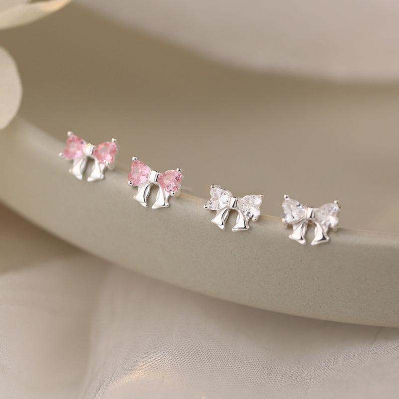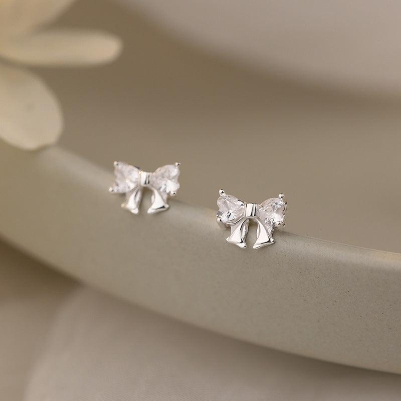 D廠-S999足銀鋯石蝴蝶結耳環甜美女可愛女孩溫柔精緻公主耳環批發「YC10224E」24.11-3