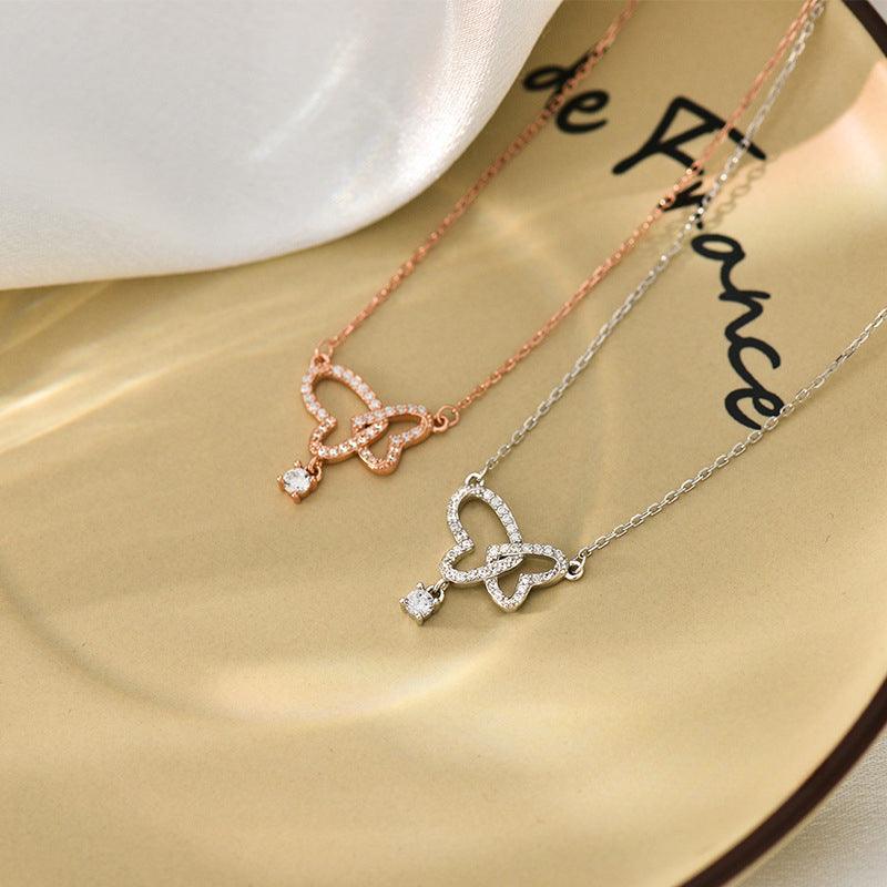 D廠-S999足銀精美愛心蝴蝶項鍊女氣質鎖骨鍊淑女風高級感頸飾「YC3371N」24.05-2